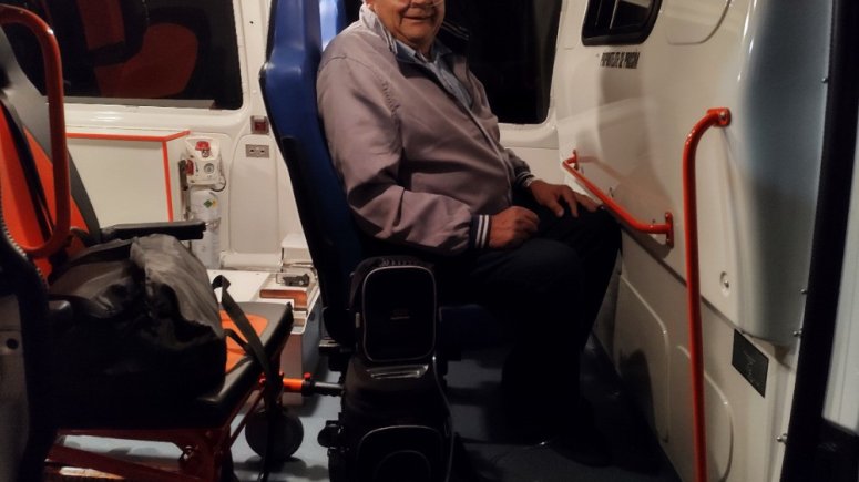 František Vrána absolvoval sanitkou krnovské nemocnice 80 km dlouhou cestu do Olomouce, kde jej čeká řada specializovaných vyšetření. „Byla to pohodlná cesta. Doma mám klasický velký přístroj, se kterým ani nepohnu, tady jsem na cestu dostal jen takový malý batoh, který je pohodlnější a přitom výkonnější. Dřív byla jakákoli cesta problém, teď je to brnkačka,“ pochvaloval si pacient zážitky z jízdy.