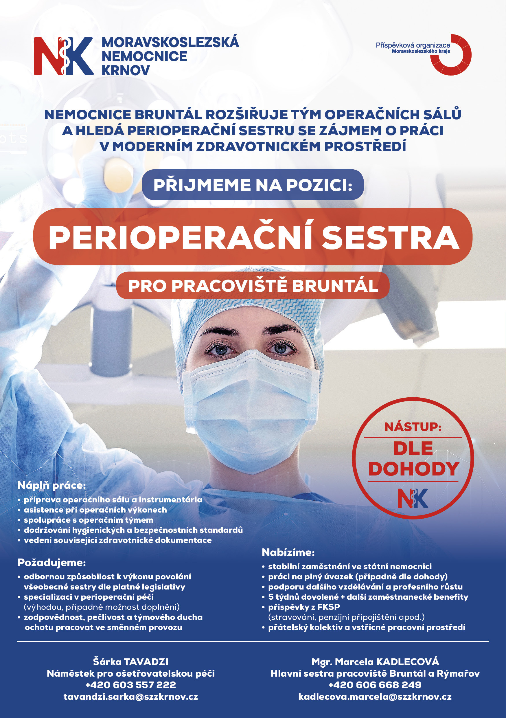 Bruntálská nemocnice rozšiřuje zdravotnický tým operačních sálů. Hledáme do našeho kolektivu perioperační sestru pro bruntálské pracoviště. Nabízíme stabilní zaměstnání, řadu benefitů a podporu v profesním růstu.