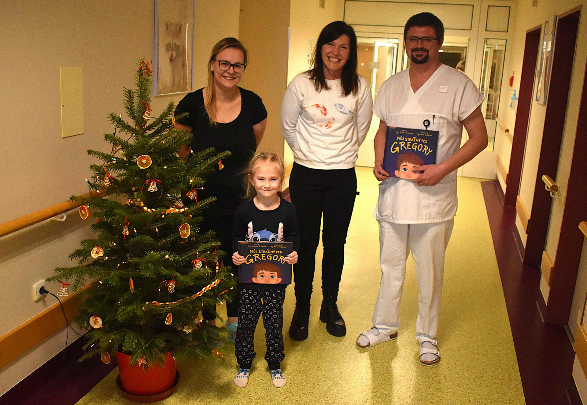 Krnovská psychoterapeutka Mgr. Simona Kalusová navštívila vánočně vyzdobenou krnovskou nemocnici. Malé pacienty hospitalizované na dětském oddělení potěšila krásnou novou knížkou, kterou sama napsala. Knížka Můj strážný pes Gregory pomáhá dospělým lépe komunikovat s dětmi.