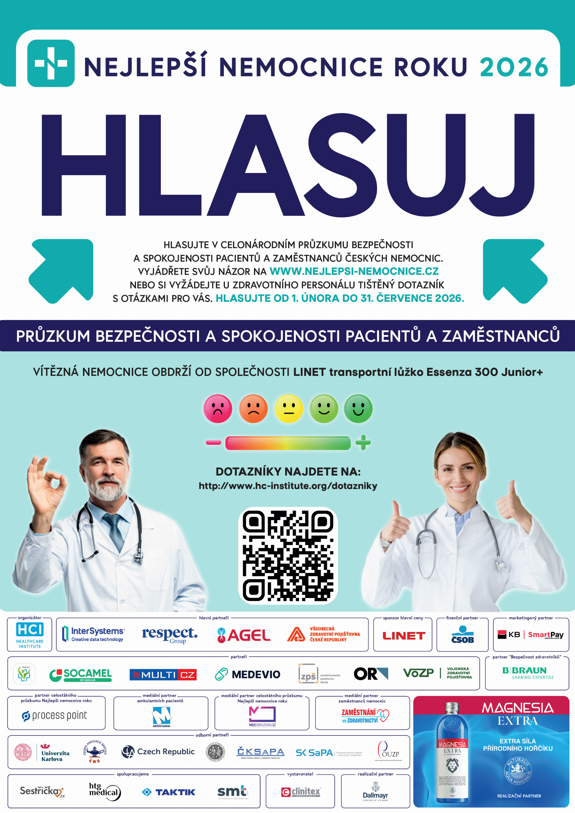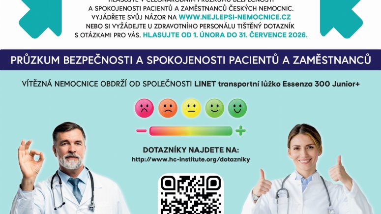 Hlasujte v celostátním průzkumu v období od 1.2.2026 do 31.7.2026 a pomozte nám zvolit NEJLEPŠÍ NEMOCNICI ROKU 2026.