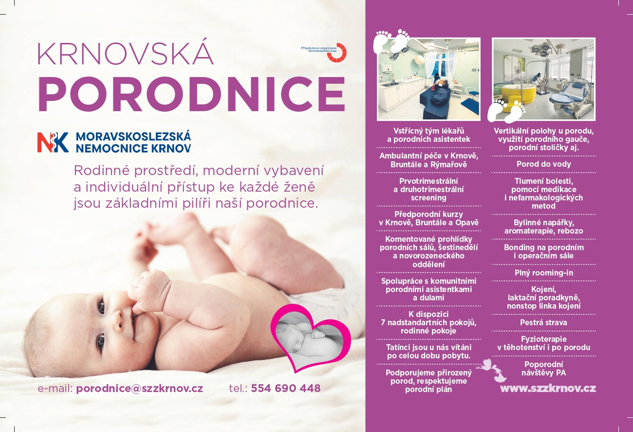 Oznámení pro budoucí maminky: ve dnech 27.4. a 18.5.2026 v 15.00 hod se koná prohlídka krnovské porodnice.