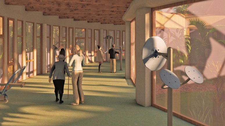 FOTO vizualizace rehabilitace 1, 2, 3, 4 – Krnovská rehabilitace patří mezi špičková pracoviště v rámci Moravskoslezského kraje. Nejpozději za deset měsíců se dočká oddělení přístavby i moderního respiria. Vizualizace: architekt Martin Janda