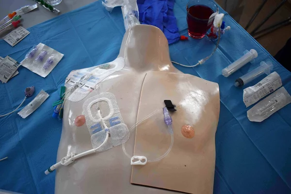 Žilní vstupy, lidově „kanyly“, patří mezi nejběžnější zdravotnické úkony. Ať už žilní vstupy slouží pacientům k podávání léků, infuzí nebo výživy, jde o základní podmínku úspěšné léčby. V Krnovské nemocnici zavadíme také žilní vstupy střednědobé a dlouhodobé. Tyto speciální typy katetrů umožňují bezpečný a spolehlivý přístup do krevního řečiště na týdny, měsíce nebo dokonce i roky. Význam žilních vstupů v moderní medicíně je zásadní. Proto Krnovská nemocnice k této problematice uspořádala odborný seminář. Nemocniční jídelna se zaplnila do posledního místa zdravotníky mnoha oborů, kteří si chtěli rozšířit teoretické znalosti a sdílet své praktické zkušenosti. Náměstkyně pro ošetřovatelskou péči Šárka Tavandzi v úvodu semináře připomenula týmu kolegů, že prohlubování znalosti problematiky žilních vstupů je pro zdravotníky součást profesního růstu. Ať už jde o zavádění žilních vstupů za přísně aseptických podmínek, péči o ně nebo připravenost na všechna potenciální rizika a komplikace. „Kvalita, bezpečnost a správné ošetřování centrálních vstupů mají přímý dopad na zdraví i komfort našich pacientů. Cílem dnešního setkání je nejen prohloubit naše teoretické znalosti, ale především sdílet praktické zkušenosti, upozornit na nejčastější komplikace a představit moderní přístupy k prevenci infekcí či správné péči o jednotlivé typy vstupů,“ uvedla Šárka Tavandzi na úvod a představila lektorku: zdravotní sestřičku Lenku Vaculovou z ambulance cévních vstupů, která má bohaté zkušenosti také z chirurgického i urologického oddělení. Lenka Vaculová v březnu 2024 stála u založení této ambulance, která v Krnovské nemocnici pečuje o cévní vstupy pacientů napříč obory. Také edukuje nemocniční personál. „Program semináře jsme sestavili tak, aby přispěl ke sjednocení postupů ošetřovatelské péče v oblasti žilních vstupů. Chtěla bych vás upozornit na nejnovější doporučené postupy a techniky. V průběhu semináře máte možnost ptát se, sdílet své zkušenosti a zapojit se do diskuzí,“ přivítala Lenka Vaculová kolegy s tím, že kromě prezentace ve formě videa a fotografií jsou připravené také 3D modely, které umožňují vyzkoušet si doporučené postupy. Zajištění kvalitního žilního přístupu patří mezi rutinní výkony lékařů, ale ve velké míře se na něm podílí také nelékařský zdravotnický personál. Lenka Vaculová nedávno prošla akreditovaným kurzem ministerstva zdravotnictví a stala se první sestrou v krnovské nemocnici, která zavádí periferní kanyly pod ultrazvukovou navigací. To je důležité zejména u rizikových pacientů s obtížně přístupnými žílami kvůli anomáliím a různým zdravotním komplikacím. „Aby mohl být žilní vstup používán po delší dobu, je nezbytné jeho umístění a zavedení naplánovat. Ovlivňuje nejen komfort pacienta, ale také kvalitu ošetřovatelské péče po celou dobu léčby,“ uvedla lektorka Lenka Vaculová, kterou potěšila hojná účast na odborném semináři.