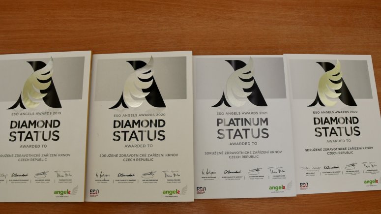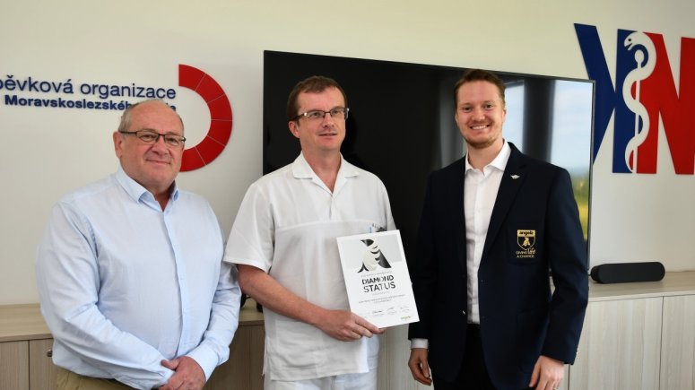 Diamantový, tedy nejvyšší, status za vynikající péči o pacienty s cévní mozkovou příhodou (CMP) převzal tým Iktového centra krnovské nemocnice. Prestižní certifikát mezinárodní asociace European Stroke Organisation (ESO) Angels Initiative řadí krnovské iktové centrum mezi světovou špičku.