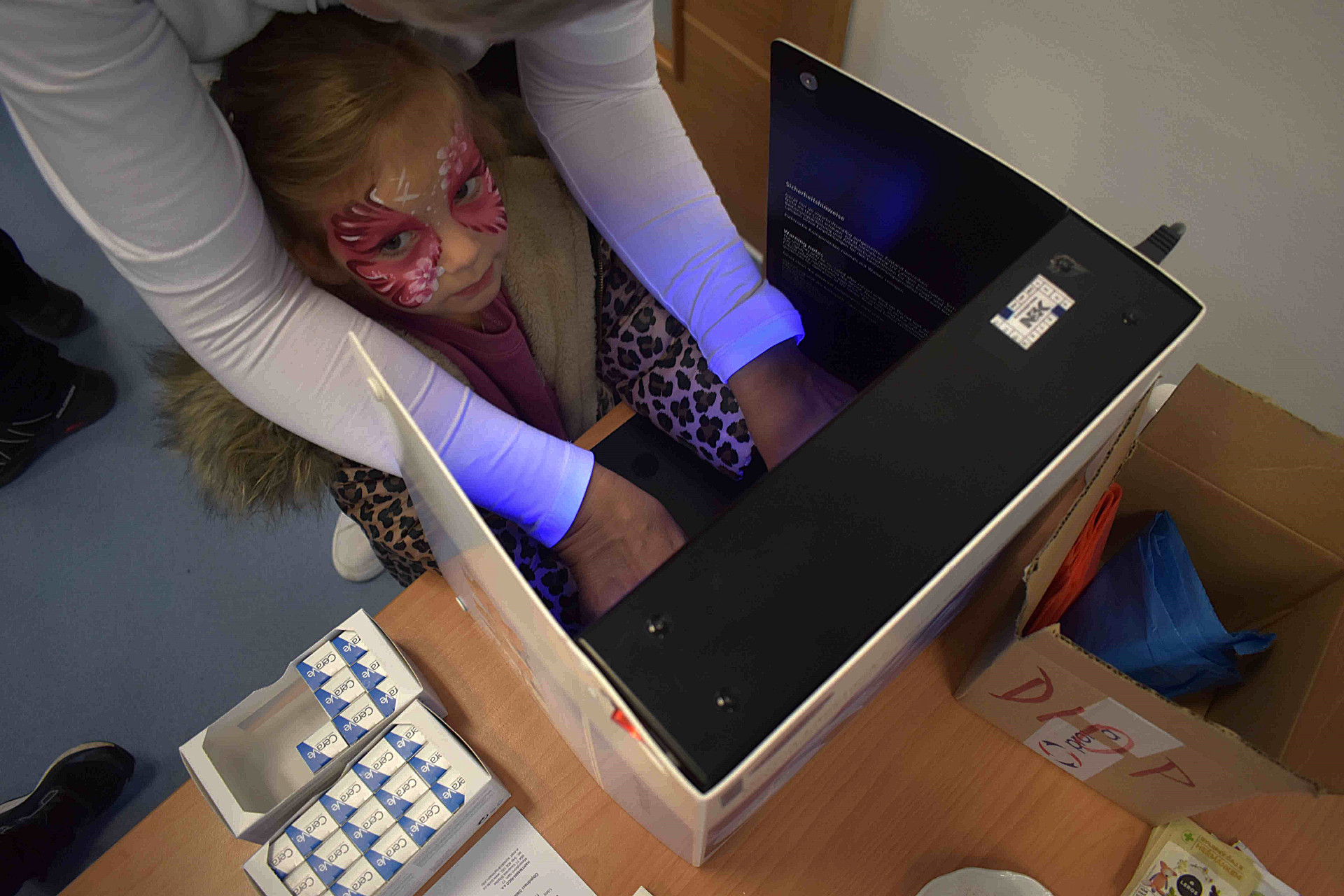 Hygiena je základ. Proto k profesi zdravotníků patří neustálá dezinfekce rukou. Dobře si uvědomují, že správné mytí rukou je potřeba natrénovat. Proto ve Vrbně nabídli zájemcům k vyzkoušení speciální trenažér. Jedná se o gelovou dezinfekci, která pod UV světlem fluoreskuje. Pod UV lampou každý hned vidí na vlastní oči, zda má správně umyté ruce nebo nějaké důležité místo vynechal. „Nikdo učený z nebe nespadl, takže i správnou hygienu rukou se musíte naučit, jako každou jinou dovednost. Proto hravou formou nabízíme tento test. Sestřičky poradí, jak si správně mýt a ošetřovat ruce. Mnohé čekalo překvapení, že to není tak snadné jak se zdá. Nejvíc mě potěšilo, když si test mytí rukou přišli společně vyzkoušet rodiče i děti a pak si o tom ještě dlouho povídali,“ uzavřela náměstkyně pro ošetřovatelskou péči SZZ Krnov Šárka Tavandzi.