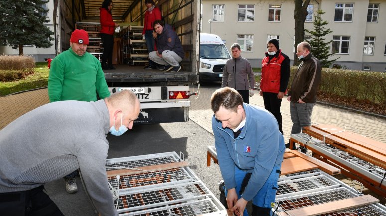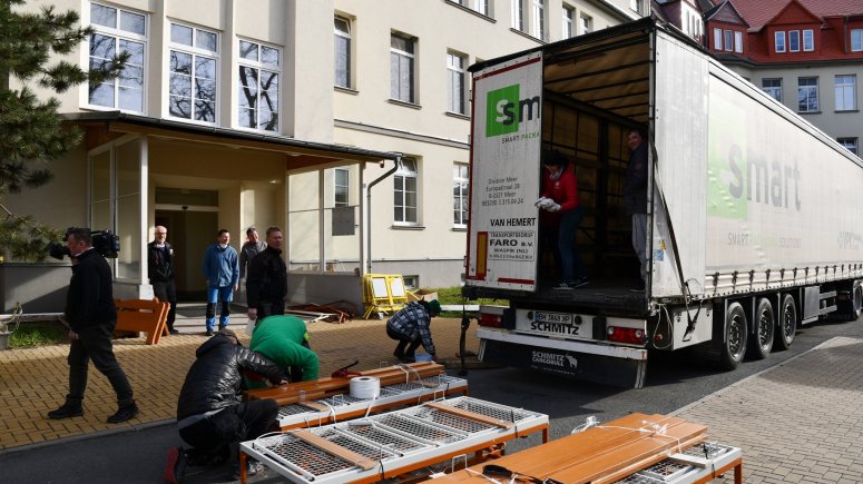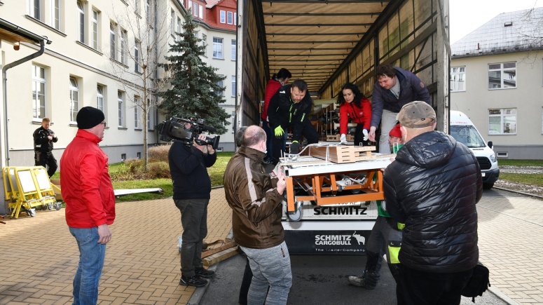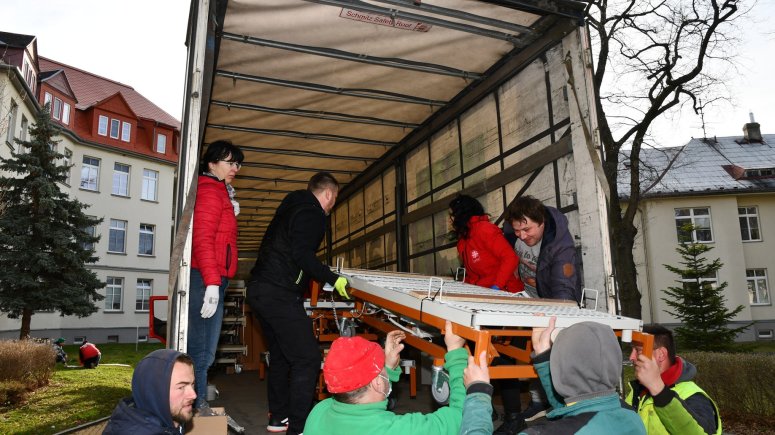 Pro lůžka si do Města Albrechtic přijel v pátek 8. dubna 2022 kamion z Ukrajiny. „Na všech odděleních naší nemocnice ukládáme pacienty na kvalitní a elektricky polohovatelné postele, které se snažíme v případě potřeby nahrazovat modernějšími typy. Lůžka, která papírově darujeme Charitě Krnov, a převezou se do Nadvirny, jsme poslední měsíce nepoužívali, přesto nám je bylo líto vyhodit, jelikož jsou plně funkční a ve velmi dobrém stavu. Proto jsme je uložili do skladu a nabídli v rámci krajského portálu jiným zařízením. Nikdo o ně ale neprojevil zájem. Nyní se naskytla příležitost, kdy budou moci opět sloužit potřebným. Věřím, že využití v partnerském městě Nadvirna najdou i po skončení války,“ uvedl ředitel SZZ Krnov MUDr. Ladislav Václavec, MBA.