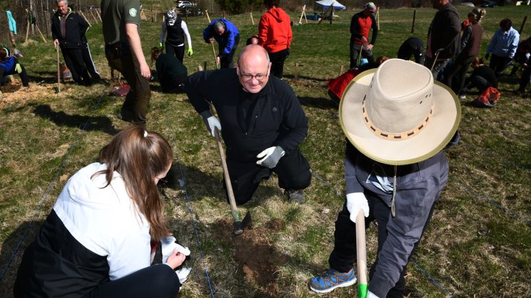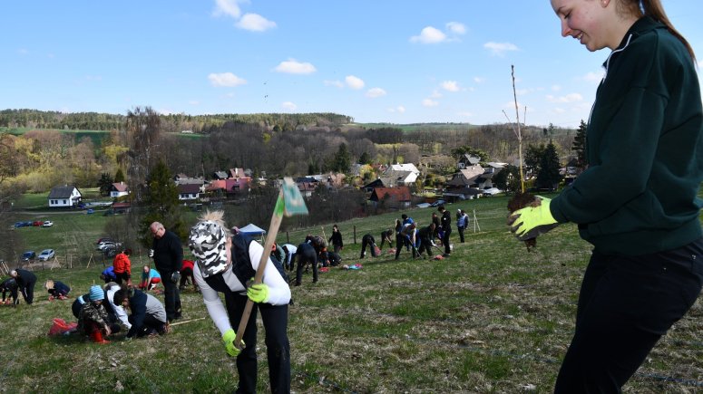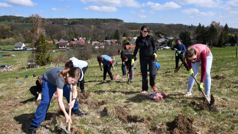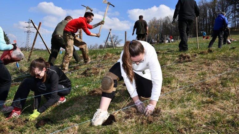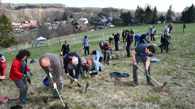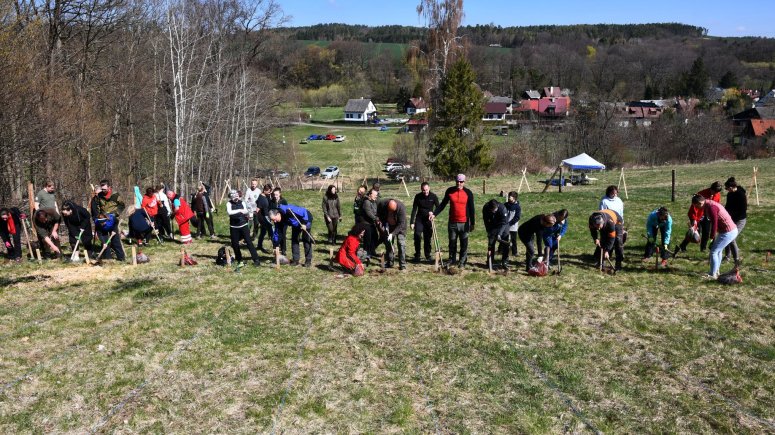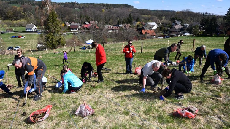FOTO les 1, 2, 3, 4, 5, 6, 7, 8, 9, 10, 11 - Zaměstnanci a přátelé krnovské nemocnice vysadili 4 000 sazenic stromků v Brumovicích-Pochni. Foto Jiří Krušina
