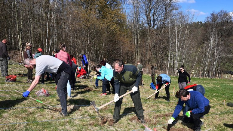 Čtyři tisíce sazenic buků a dubů vysadili v sobotu 23. dubna 2022 poblíž nádrže Pocheň zaměstnanci a přátelé krnovské nemocnice.