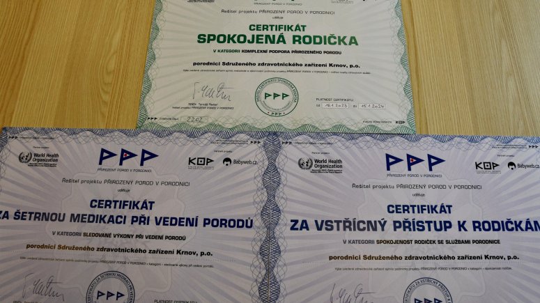 Certifikáty si převzali zástupci porodnice. „Tým erudovaných lékařů, sester a porodních asistentek, kteří se stále vzdělávají a sledují moderní trendy v porodnictví, je pro nás alfou a omegou, ale chtěli jsme nabídnout maminkám něco víc, proto jsme začali spolupracovat s dalšími odděleními krnovské nemocnice. Jak je vidět, zejména spolupráce s rehabilitačním oddělením a nutriční poradnou je velmi úspěšná a žádaná,“ prozradil primář gynekologicko-porodnického oddělení MUDr. Jozef Pitoňák, Ph.D., MBA.